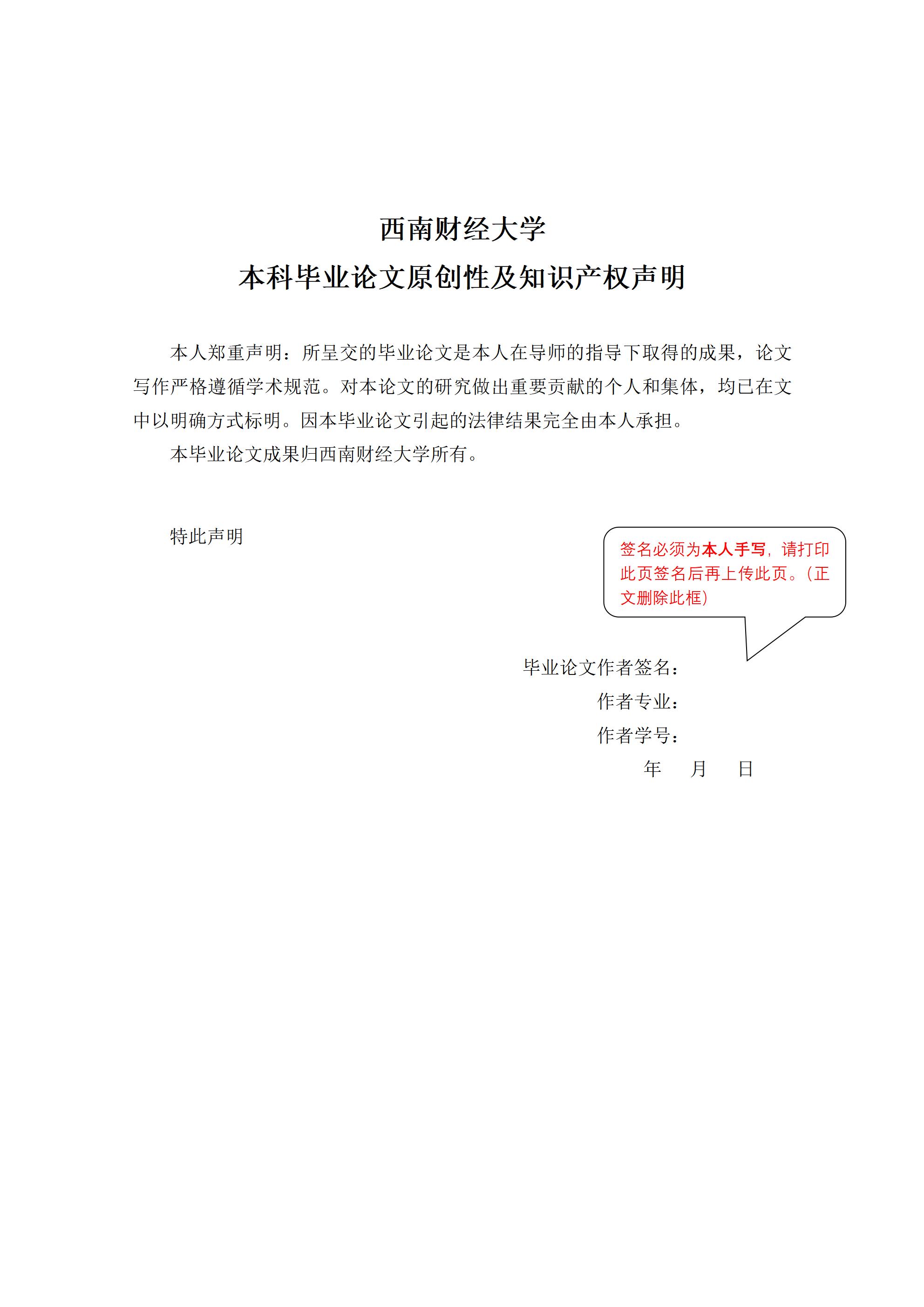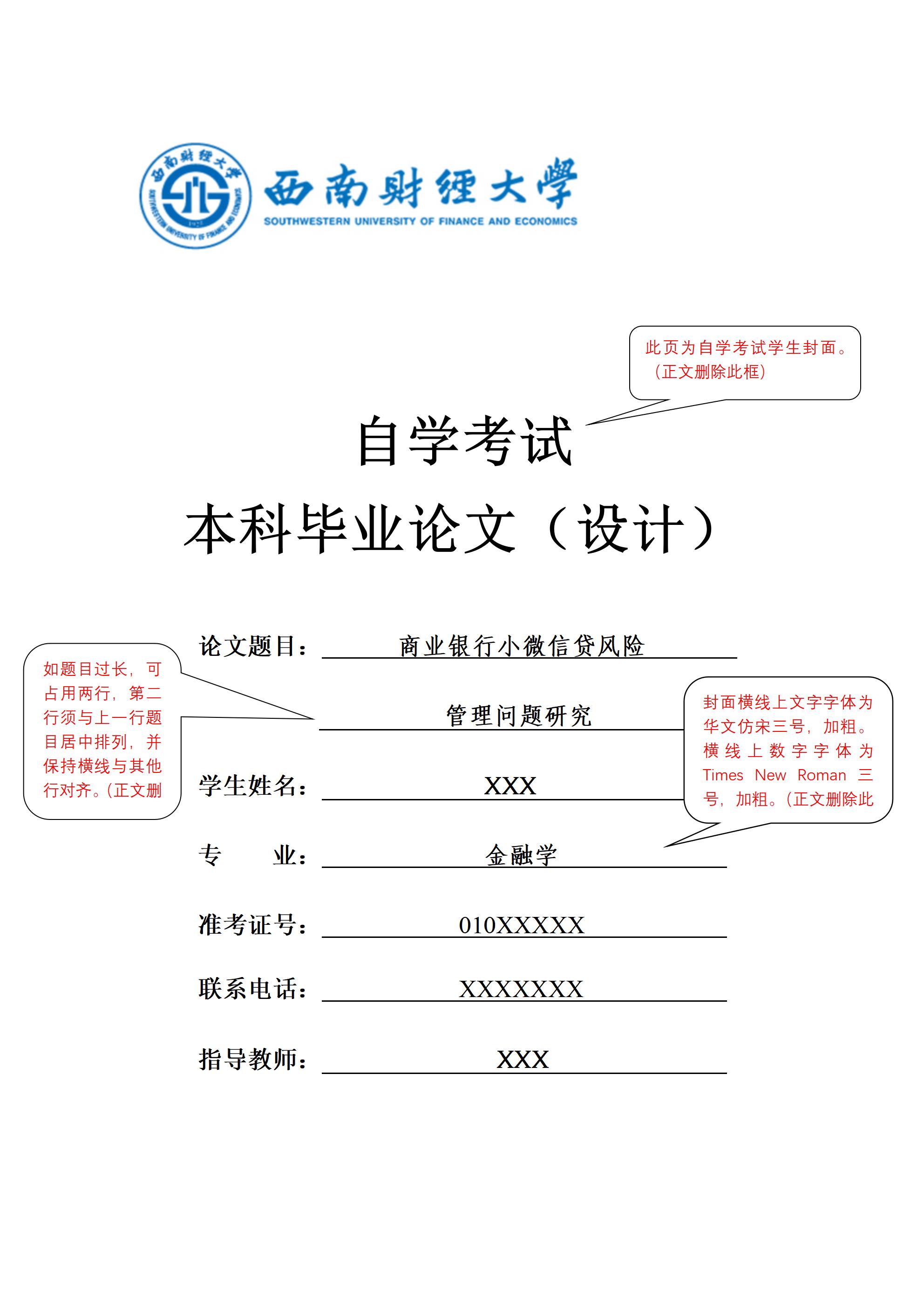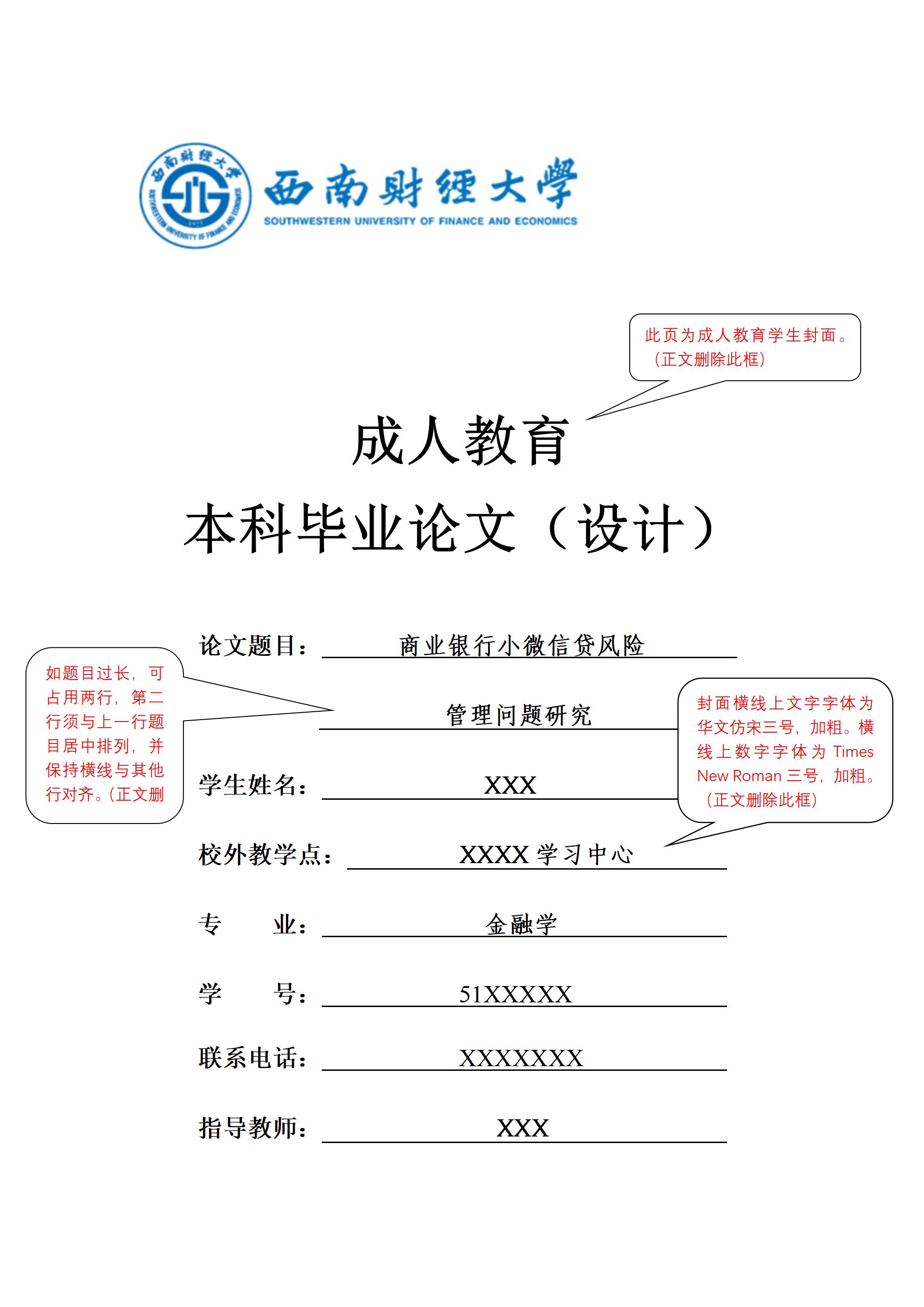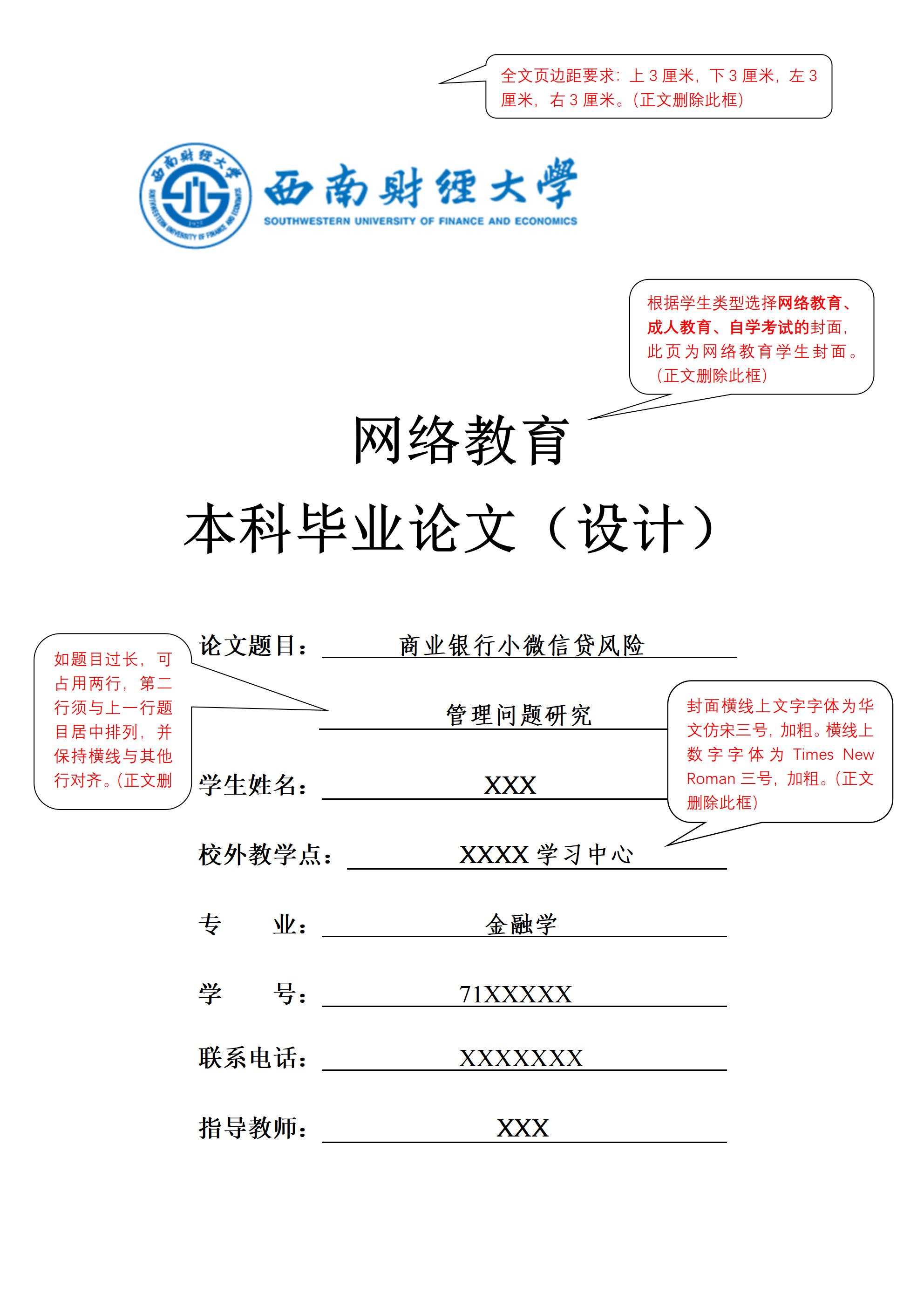 西南财经大学继续教育学院本科毕业(学位)论文(设计)示例模板
